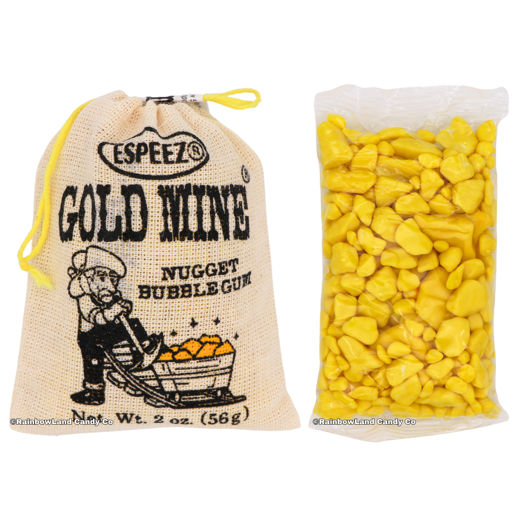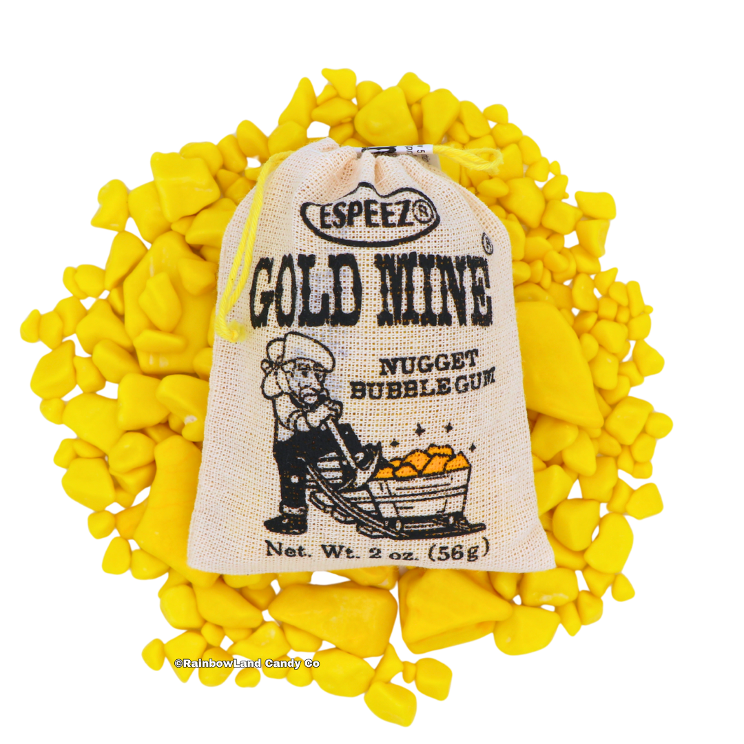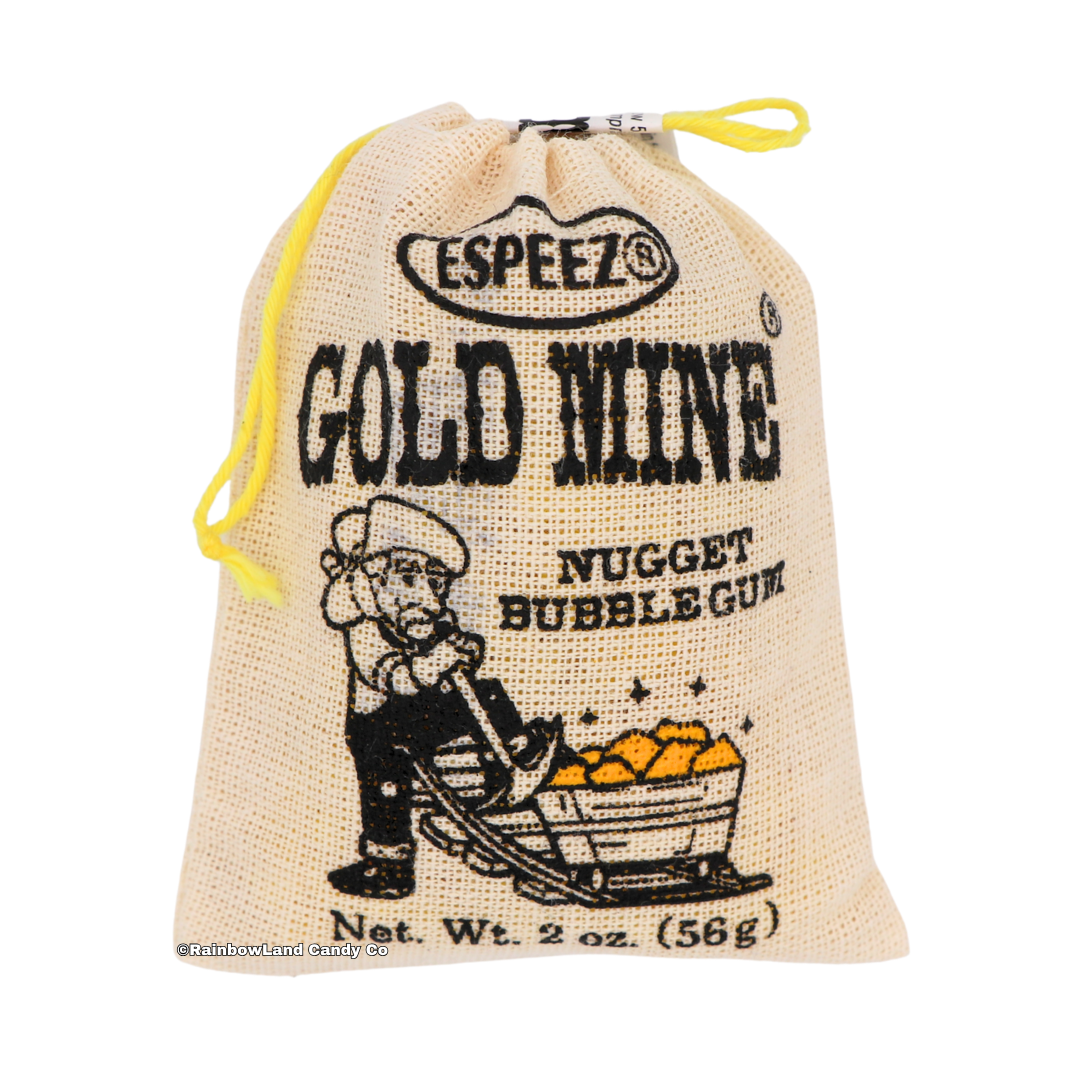 Strike it rich with Gold Mine Nugget Bubble Gum! This bubble gum looks just like shiny gold nuggets and brings major Wild West vibes with every chew! And it even comes in an old-fashioned mini burlap sack! 💛✨