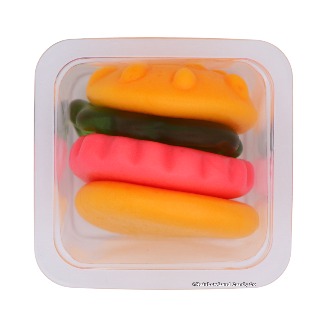 Dive under the sea and snack like Bikini Bottom’s favorite fry cook with this Giant Krabby Patty Gummy Candy! Straight from the Krusty Krab (well, sort of), this fun and fruity gummy candy stacks up layers of chewy goodness that look just like the iconic Krabby Patty!