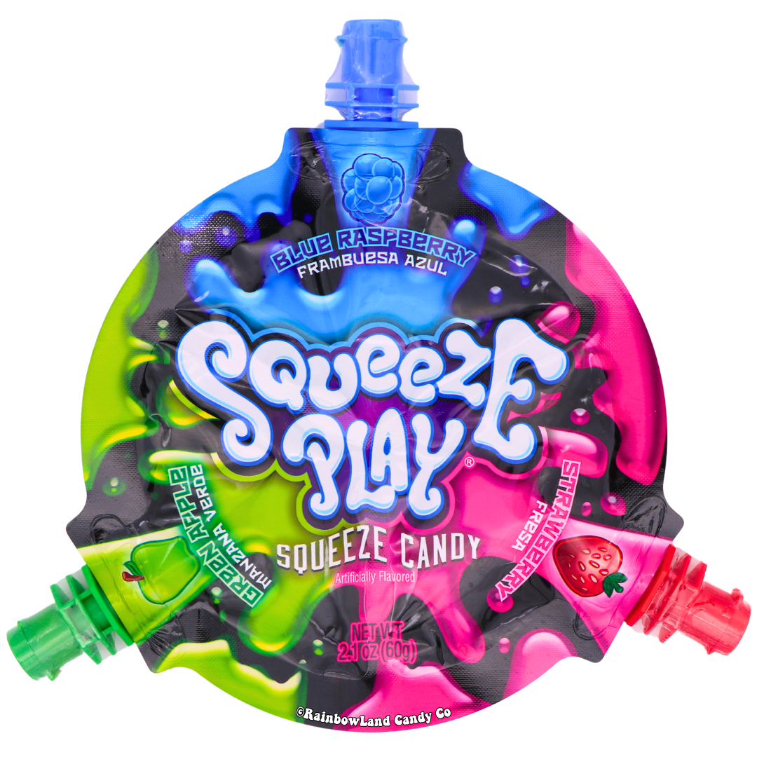 Squeeze Play delivers ooey-gooey candy goodness in a wild trio of fruity flavors: Blue Raspberry, Green Apple, and Strawberry—all packed into one exciting pouch! With three individual twist caps, you can mix, match, or enjoy each flavor on its own!