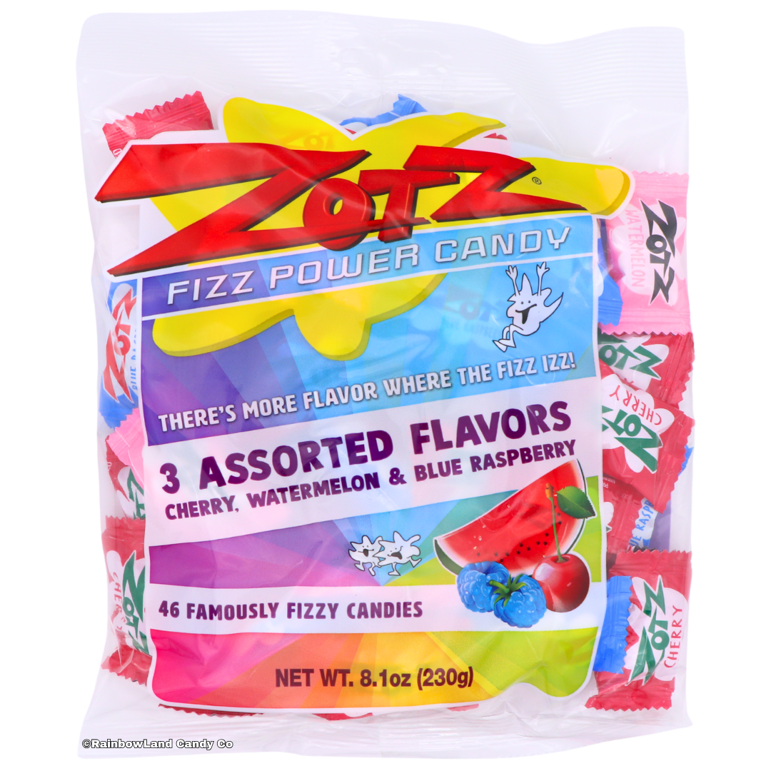 This bag of Assorted Zotz comes with 46 individually wrapped zotz candies!Β
